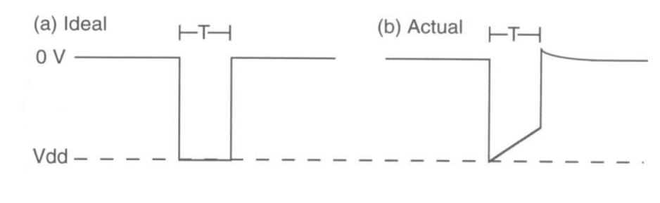 Figure show the ideal wave form and realistic waveform of output circuit of pacemaker. Realistic depiction of waveform appearing across heart emitted from capacitor discharge output circuit.